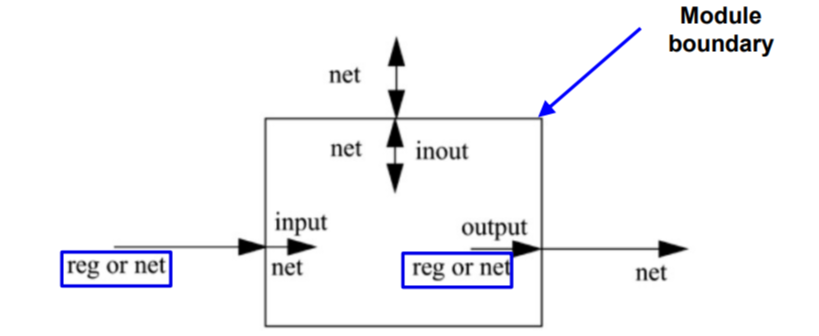 외부적인 input port는 reg나 net 데이타 타입만 된다.