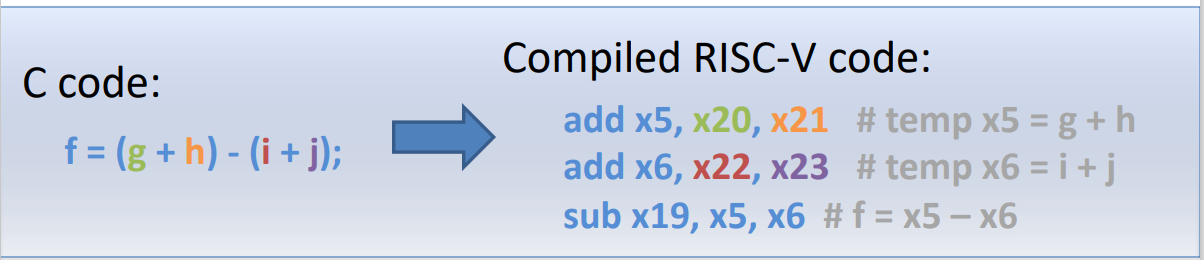 RISC-V의 산술 연산들은 반드시 3개의 피연산자들을 가진다.