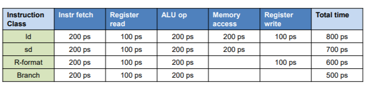 register read/write하는데는 100ps가 들고 다른 단계는 모두 200ps의 시간이 든다.