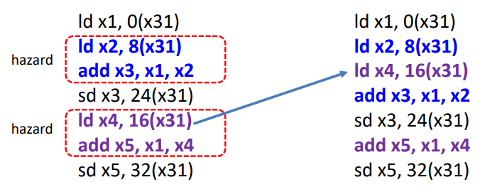 load -use data hazard를 최대한 줄여야 성능이 좋아진다. 이럴때, code를 어떻게 짜냐에따라 이 횟수가 달라진다.
