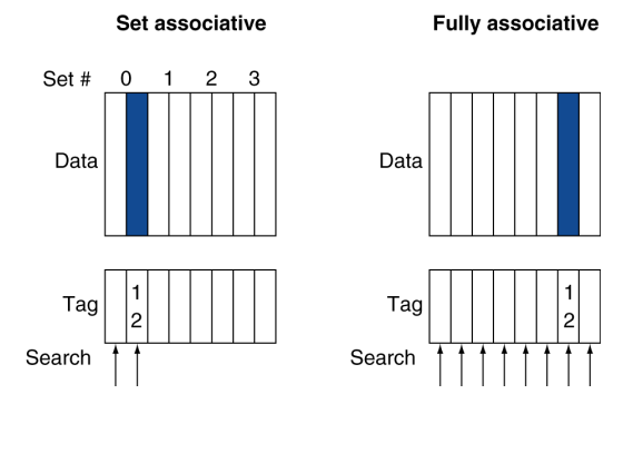 Set associative Cache와 Fully associative Cache는 공간활용도가 높지만 Search할 때 더 많은 Tag를 봐야하므로 더 느리다는 점이 있다.