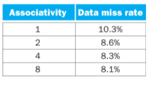 Associativity(Set의 크기)와 Data miss rate의 상관을 알아보겠다.