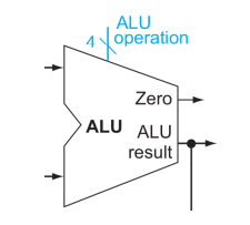 input으로 데이타 두개가 들어오고 ALU내부에서 연산이 일어난다. output으로 Zero, ALU result가 나가는데, result는 결과값을, Zero는 branch 할때를 위해 있는 것으로 ALU 연산 결과가 0이면 1을, 1이면 0을 리턴해준다.