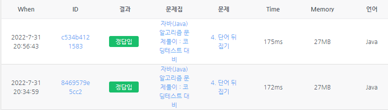 이렇게 되면, 단어 뒤집기가 완료되었다.